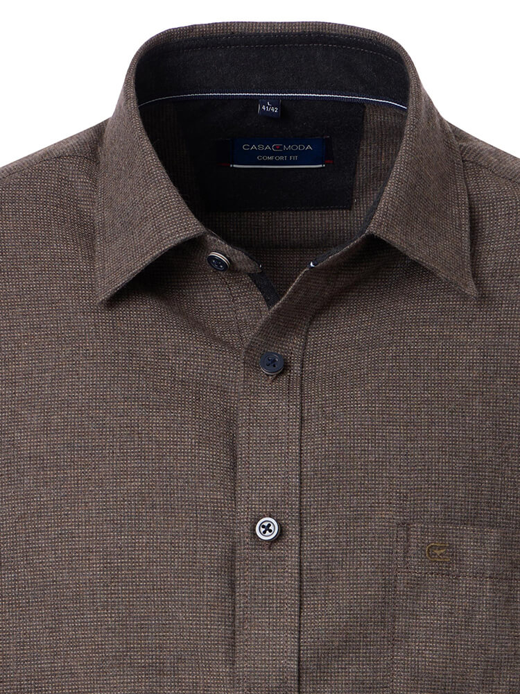 Den komfortable casual skjorte fra CASAMODA Comfort Fit kollektionen repræsenterer den sofistikerede og modebevidste mand af i dag. En klassisk pasform kombineret med moderigtige produktdetaljer giver en høj komfort og gør denne skjorte til en mester i at kombinere. En almindelig herreskjorte i farven brun skjorte til mænd bør ikke mangle i enhver mands garderobe og kan bæres med den elegante og tidløse Kent krave til enhver lejlighed og i hverdagen. Denne CASAMODA Comfort Fit skjorte til mænd ser bedst ud med et matchende slips og en bred slips knude.