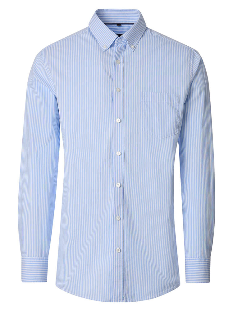 Den komfortable casual skjorte fra CASAMODA Comfort Fit kollektionen repræsenterer den sofistikerede og modebevidste mand af i dag. En klassisk pasform kombineret med moderigtige produktdetaljer giver en høj komfort og gør denne skjorte til en mester i at kombinere. En stribede herreskjorte i farven lyseblå skjorte til mænd bør ikke mangle i enhver mands garderobe og kan bæres med den elegante og tidløse Button-down krave til enhver lejlighed og i hverdagen. Denne CASAMODA Comfort Fit skjorte til mænd ser bedst ud med et matchende slips og en bred slips knude.Oplysninger fra producenten: