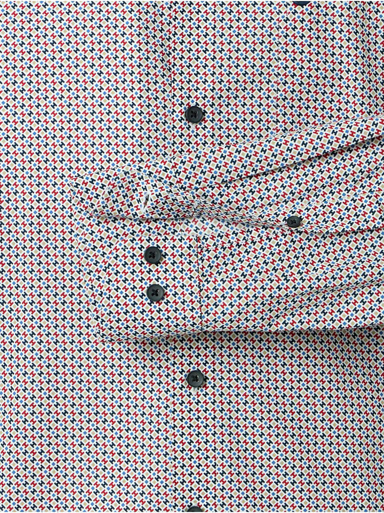 Den komfortable business skjorte fra REDMOND Comfort Fit kollektionen repræsenterer den sofistikerede og modebevidste mand af i dag. En klassisk pasform kombineret med moderigtige produktdetaljer giver en høj komfort og gør denne skjorte til en mester i at kombinere. En med motiver herreskjorte i farven rød skjorte til mænd bør ikke mangle i enhver mands garderobe og kan bæres med den elegante og tidløse Kent krave til enhver lejlighed og i hverdagen. Denne REDMOND Comfort Fit skjorte til mænd ser bedst ud med et matchende slips og en bred slips knude.
