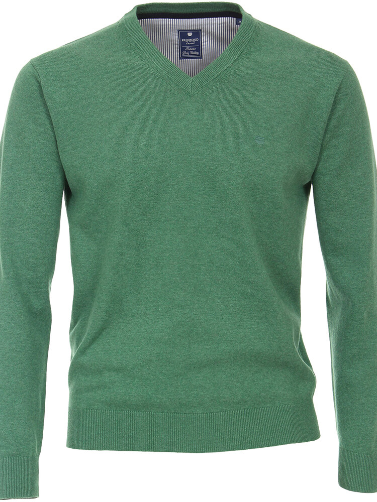 Uanset årstiden vil denne yderst stilfulde REDMOND regular fit strikpullover holde dig komfortabel på køligere aftener eller dage. Denne ensfarvede strikpullover i mørkegrøn af 100% bomuld med en elegant V-hals supplerer din garderobe og fremhæver din maskuline silhuet. Uanset om det er i fritiden eller på kontoret, er du garanteret en god følelse med denne let tilpassede trøje fra REDMOND.