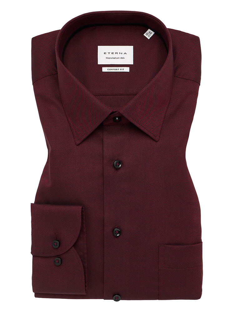 Den komfortable business skjorte fra ETERNA Comfort Fit kollektionen repræsenterer den sofistikerede og modebevidste mand af i dag. En klassisk pasform kombineret med moderigtige produktdetaljer giver en høj komfort og gør denne skjorte til en mester i at kombinere. En almindelig herreskjorte i farven mørkerød skjorte til mænd bør ikke mangle i enhver mands garderobe og kan bæres med den elegante og tidløse Kent krave til enhver lejlighed og i hverdagen. Denne ETERNA Comfort Fit skjorte til mænd ser bedst ud med et matchende slips og en bred slips knude.Oplysninger fra producenten: