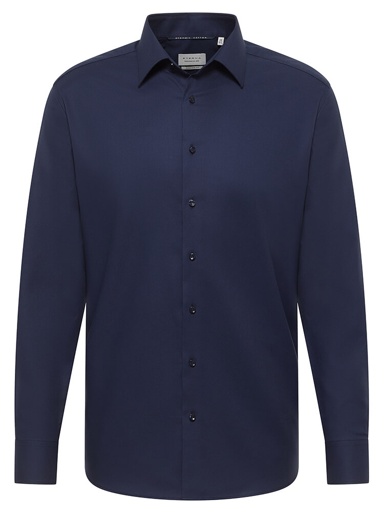Den moderne business skjorte fra ETERNA Modern Fit kollektionen repræsenterer den selvsikre og modebevidste mand af i dag. En modern pasform kombineret med førsteklasses detaljer lover høj komfort og gør denne skjorte til en kombinationskunstner. En almindelig herreskjorte i farven marineblå skjorte til mænd bør ikke mangle i enhver mands garderobe og kan bæres med den elegante og tidløse Kent krave til enhver lejlighed og i hverdagen. Denne ETERNA Modern Fit skjorte til mænd ser bedst ud med et matchende slips og en bred slips knude.Oplysninger fra producenten: