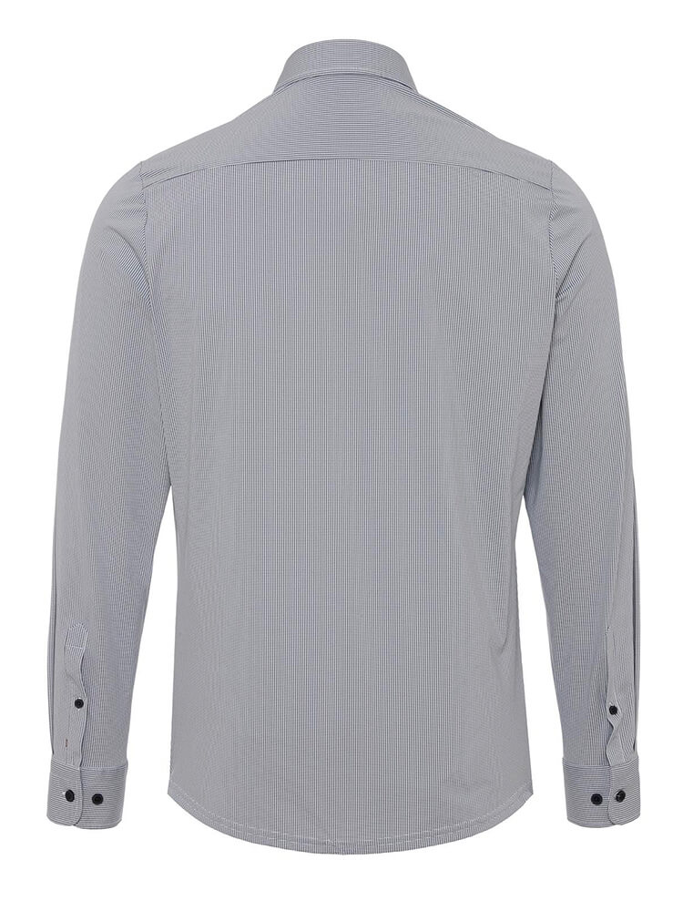 Den elegante jersey skjorte fra PURE Functional kollektionen repræsenterer den slanke, modebevidste mand af i dag. En slank pasform kombineret med moderigtige detaljer lover høj komfort og gør denne skjorte til en kombinationskunstner. En almindelig herreskjorte i farven røgblå skjorte til mænd bør ikke mangle i enhver mands garderobe og kan bæres med den elegante og tidløse Cutaway krave til enhver lejlighed og i hverdagen. Denne PURE Functional skjorte til mænd ser bedst ud med et smalt slips og en lille slips knude.Oplysninger fra producenten:
