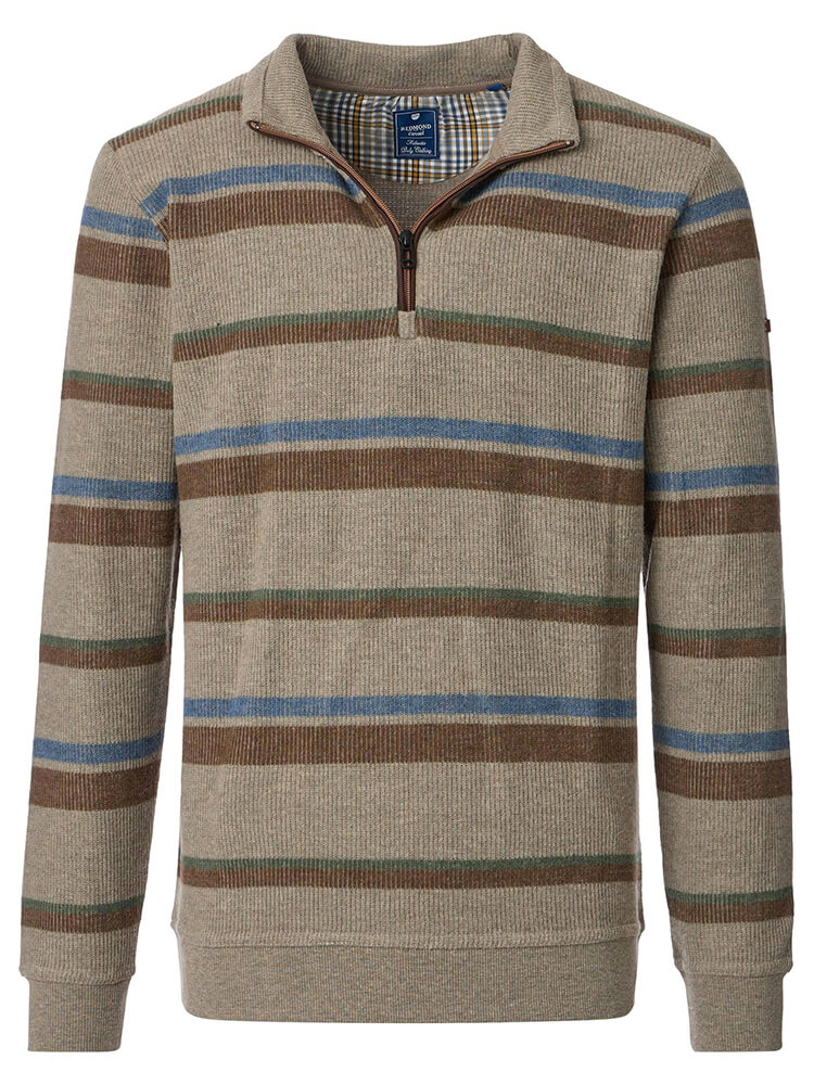 Uanset årstiden vil denne yderst stilfulde REDMOND regular fit strikpullover holde dig komfortabel på køligere aftener eller dage. Denne stribede strikpullover i lys beige af med en elegant Stående krave supplerer din garderobe og fremhæver din maskuline silhuet. Uanset om det er i fritiden eller på kontoret, er du garanteret en god følelse med denne let tilpassede trøje fra REDMOND.