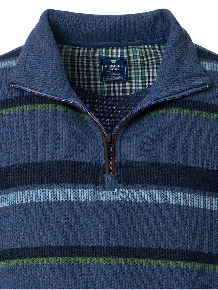 Uanset årstiden vil denne yderst stilfulde REDMOND regular fit strikpullover holde dig komfortabel på køligere aftener eller dage. Denne stribede strikpullover i mørkeblå af med en elegant Stående krave supplerer din garderobe og fremhæver din maskuline silhuet. Uanset om det er i fritiden eller på kontoret, er du garanteret en god følelse med denne let tilpassede trøje fra REDMOND.Oplysninger fra producenten: