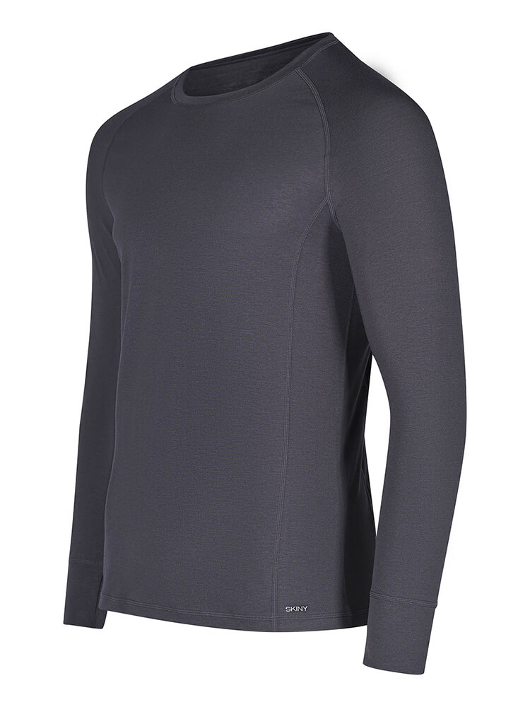 SKINY Ceravida Heat T-shirten i grå tilbyder en særlig blød og behagelig fornemmelse. Det bløde jerseystof, der er lavet af 60% polyester, 35% viskose og 5% elastan, sikrer en behagelig følelse mod huden og optimal bevægelsesfrihed. Med sin runde hals og lange ærmer i en normal pasform er denne T-shirt ideel til kølige dage. Den er nem at stryge, maskinvaskes og et behageligt, vedligeholdelsesvenligt hverdagsprodukt.