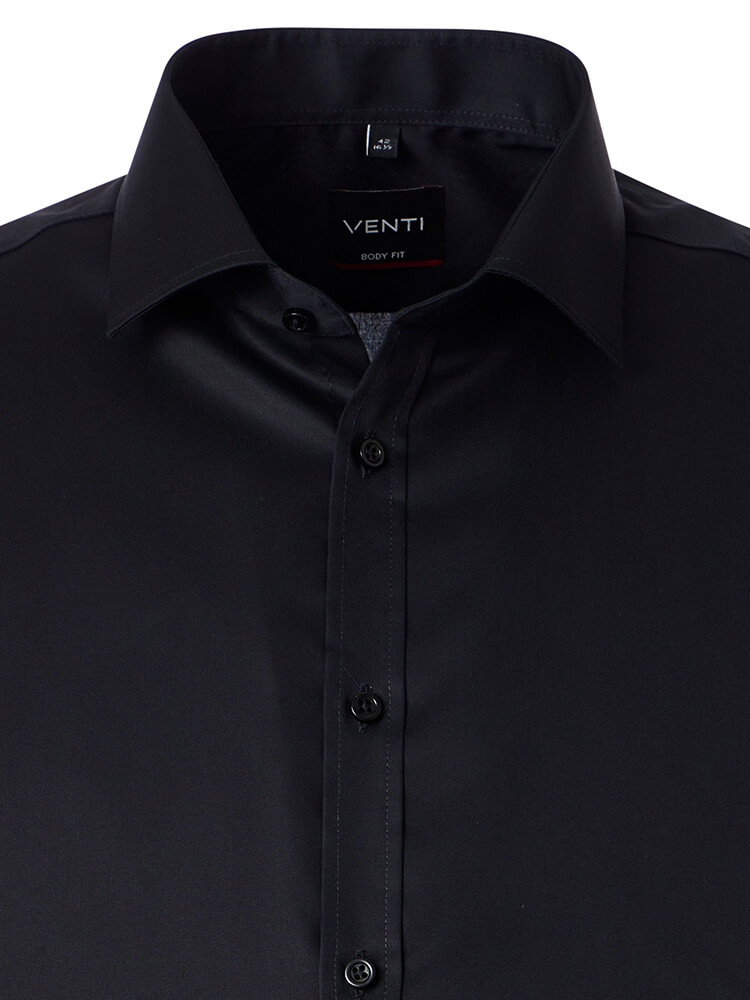 Den elegante business skjorte fra VENTI Body Fit kollektionen repræsenterer den slanke, modebevidste mand af i dag. En slank pasform kombineret med moderigtige detaljer lover høj komfort og gør denne skjorte til en kombinationskunstner. En almindelig herreskjorte i farven sort skjorte til mænd bør ikke mangle i enhver mands garderobe og kan bæres med den elegante og tidløse Kent krave til enhver lejlighed og i hverdagen. Denne VENTI Body Fit skjorte til mænd ser bedst ud med et smalt slips og en lille slips knude.Oplysninger fra producenten: