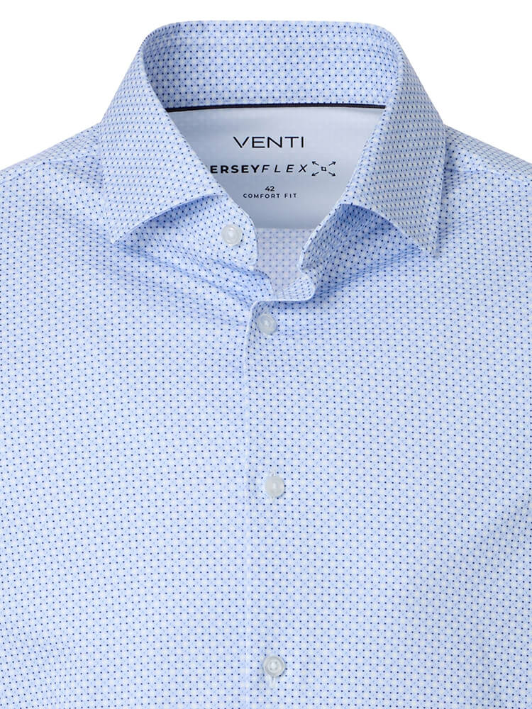 Den komfortable jersey skjorte fra VENTI Comfort Fit kollektionen repræsenterer den sofistikerede og modebevidste mand af i dag. En klassisk pasform kombineret med moderigtige produktdetaljer giver en høj komfort og gør denne skjorte til en mester i at kombinere. En med motiver herreskjorte i farven lyseblå skjorte til mænd bør ikke mangle i enhver mands garderobe og kan bæres med den elegante og tidløse Kent krave til enhver lejlighed og i hverdagen. Denne VENTI Comfort Fit skjorte til mænd ser bedst ud med et matchende slips og en bred slips knude.Oplysninger fra producenten: