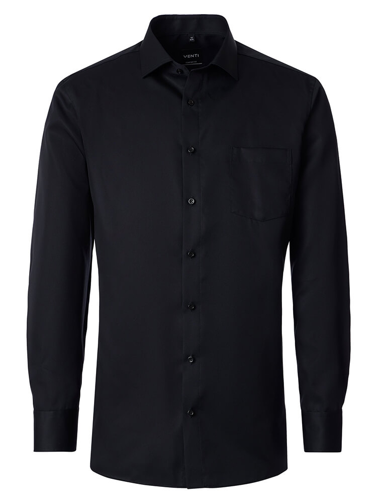 Den komfortable business skjorte fra VENTI Comfort Fit kollektionen repræsenterer den sofistikerede og modebevidste mand af i dag. En klassisk pasform kombineret med moderigtige produktdetaljer giver en høj komfort og gør denne skjorte til en mester i at kombinere. En almindelig herreskjorte i farven sort skjorte til mænd bør ikke mangle i enhver mands garderobe og kan bæres med den elegante og tidløse Kent krave til enhver lejlighed og i hverdagen. Denne VENTI Comfort Fit skjorte til mænd ser bedst ud med et matchende slips og en bred slips knude.Oplysninger fra producenten: